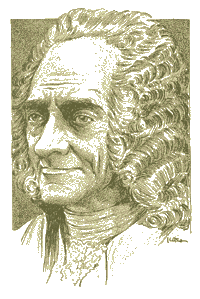 THIS brilliant playwright is known to the world today not by his own name, but simply as "Voltaire," the name he adopted after the successful production of his first play, Oedipe, in 1718. He was the son of a middle class family and was educated by Jesuit priests. From his earliest youth he seems to have been imbued with a spirit of skepticism and rebellion against intolerance. This characteristic which he was at no pains to hide, twice brought him imprisonment in the Bastille, and at a later date, periods of exile from France.